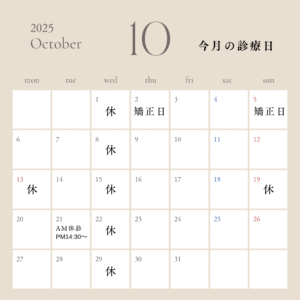 - 10月21日:院内研修のため午前休診、午後は通常診療